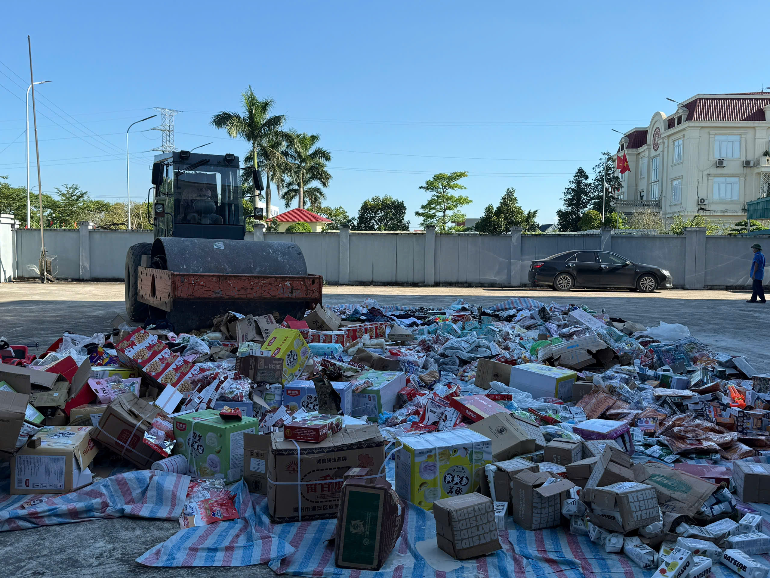 Chi cục QLTT tỉnh Quảng Trị tiêu hủy hơn 5,3 tấn thực phẩm nhập lậu