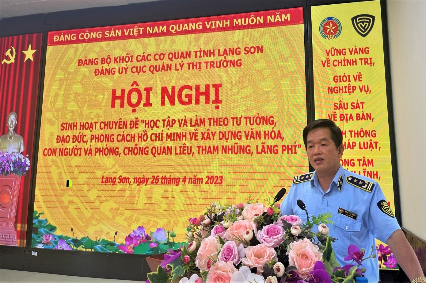 Đảng bộ Cục QLTT Lạng Sơn sinh hoạt chuyên đề “Học tập và làm theo tư tưởng, đạo đức, phong cách Hồ Chí Minh về xây dựng văn hóa, con người và phòng, chống quan liêu, tham nhũng, lãng phí”