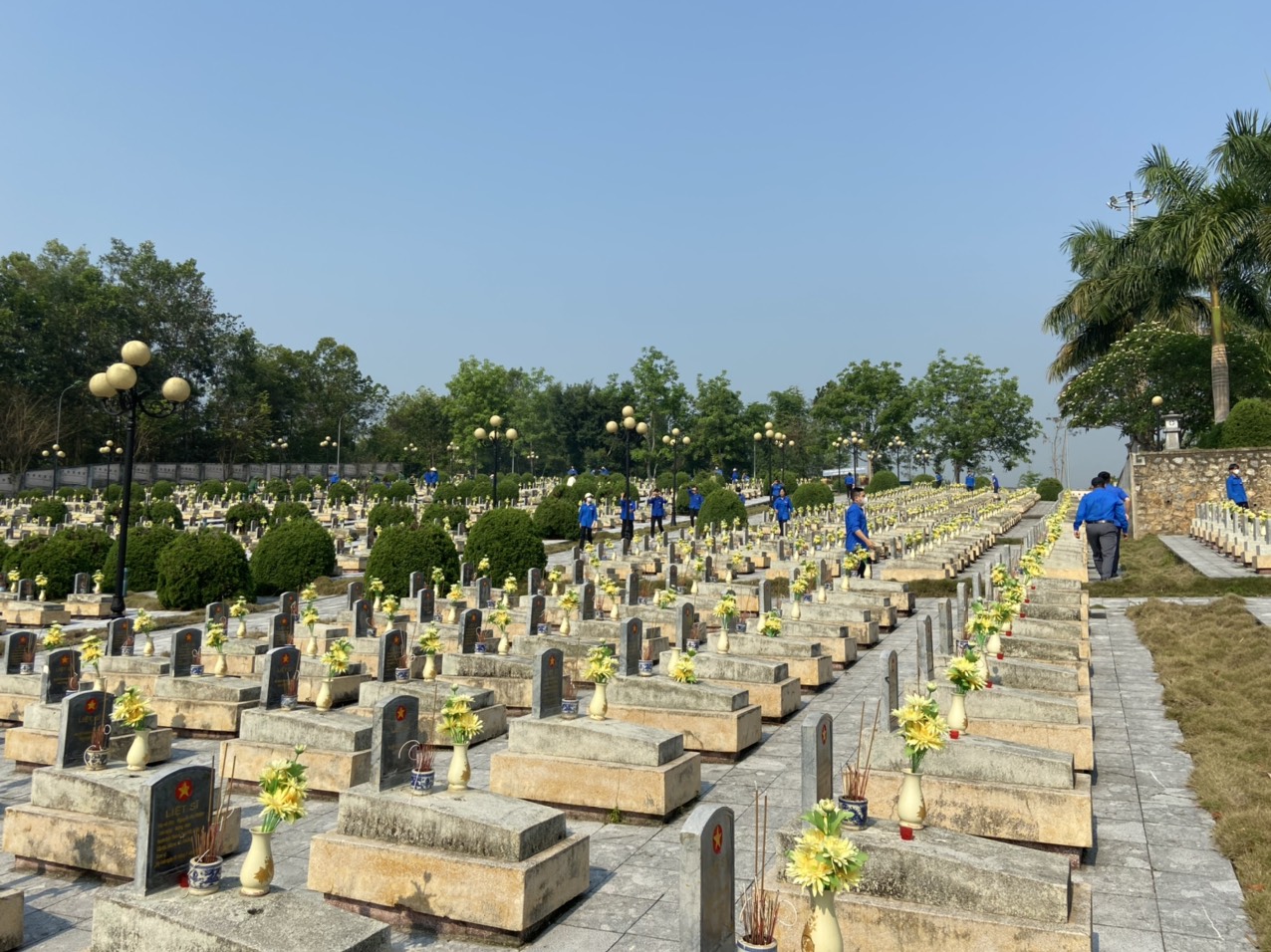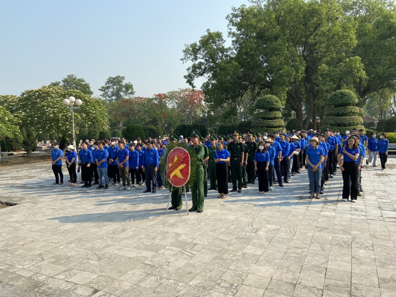 Trong không khí trang nghiêm, thành kính, đoàn thanh niên đã dâng vòng hoa dâng hương lên tượng đài và dành một phút mặc niệm, kính cẩn nghiêng mình để tỏ lòng biết ơn vô hạn của thế hệ trẻ hôm nay đến thế hệ cha anh đã không tiếc máu xương, hy sinh cho sự nghiệp giải phóng dân tộc thống nhất.