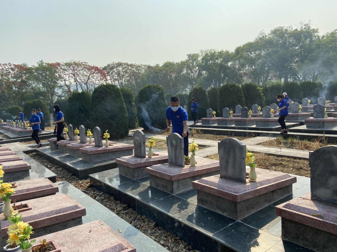 Đ/c Đào Ngọc Thái – Bí thư Chi đoàn thắp hương tại các phần mộ Anh hùng liệt sỹ