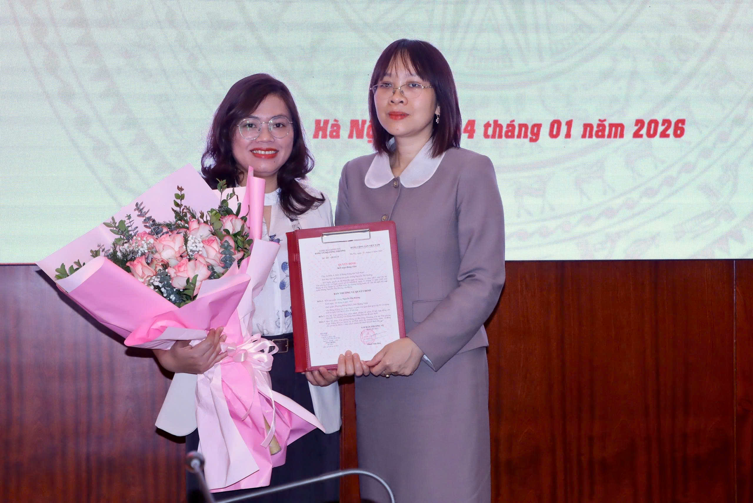 Sáng ngày 14/1/2026, Chi bộ Văn phòng Cục Quản lý và Phát triển thị trường trong nước đã long trọng tổ chức Lễ kết nạp Đảng viên cho hai quần chúng ưu tú Lê Nhật Minh và Nguyễn Thị Hương vào hàng ngũ của Đảng Cộng sản Việt Nam.