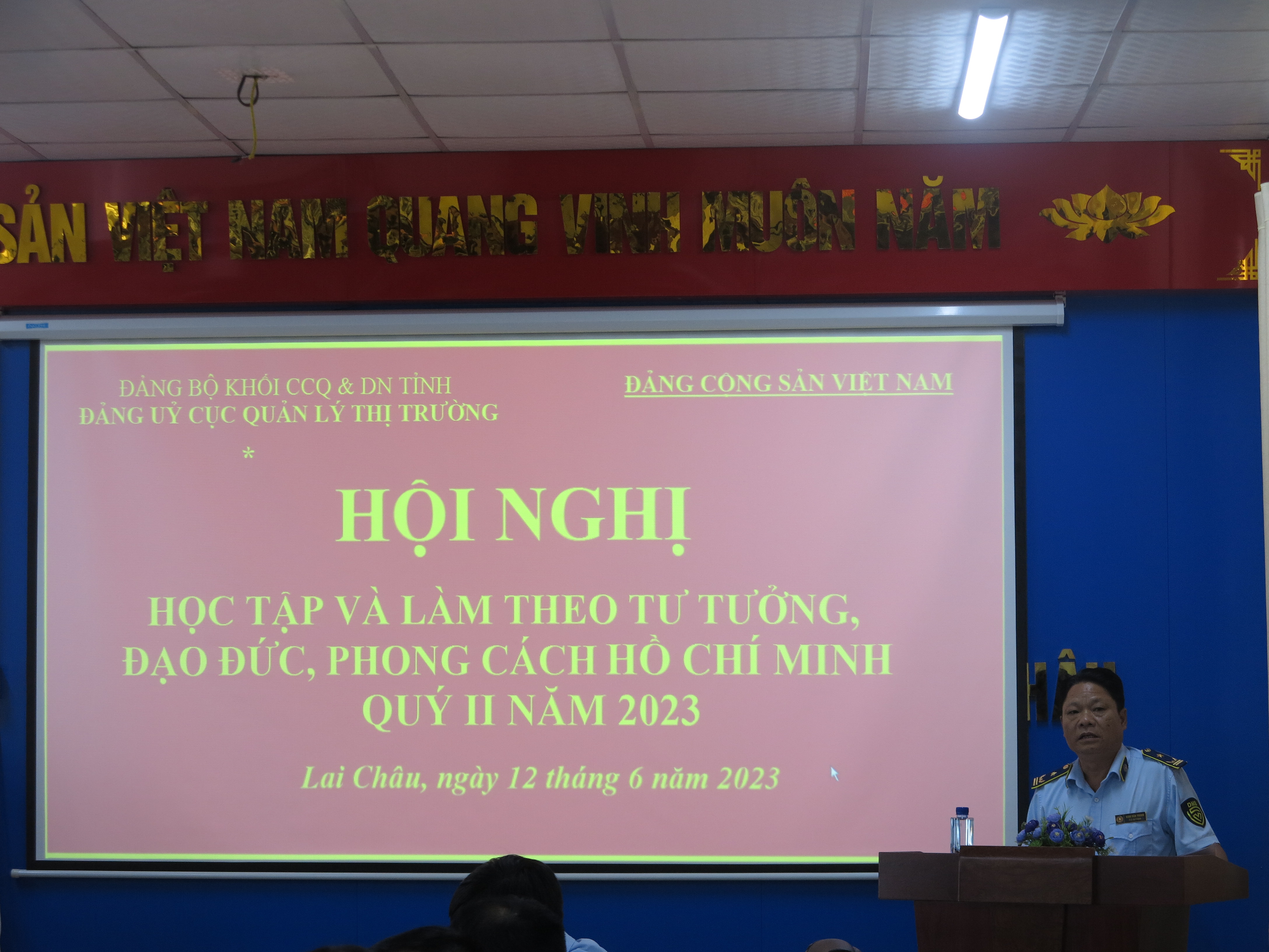 Trong ngày 12/6/2023 các đảng viên, công chức và người lao động Cục Quản lý thị trường tỉnh Lai Châu đã được nghe đồng chí Đinh Văn Thành - Phó Bí thư Đảng bộ Cục Quản lý thị trường tỉnh Lai Châu quán triệt Chuyên đề Quý II năm 2023 về nội dung: “Quan điểm của Đảng về trách nhiệm nêu gương, xây dựng phong cách, tác phong công tác của người đứng đâu và cán bộ, đảng viên; kết quả và sự cần thiết và tầm quan trọng của việc nêu cao trách nhiệm nêu gương, xây dựng phong cách, tác phong công tác của người đứng đầu và cán bộ, đảng viên” và tuyên truyền sơ kết giữa nhiệm kỳ thực hiện nghị quyết đại hội đảng các cấp, Nghị quyết Đại hội Đảng bộ tỉnh lần thức XIV, nhiệm kỳ 2020 -2025.