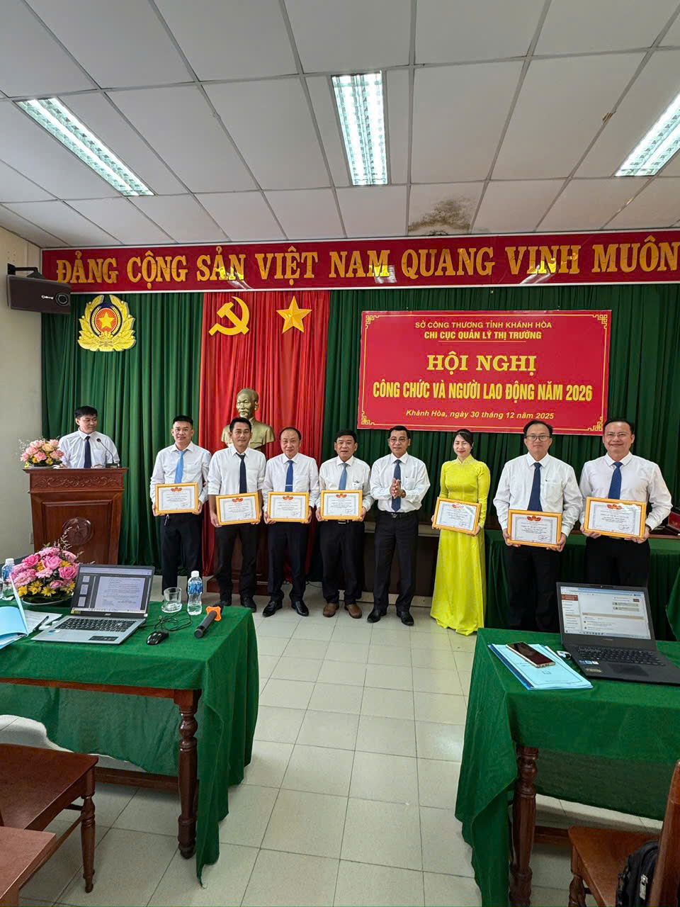 Chiều ngày 30/12/2025, Chi cục Quản lý thị trường tỉnh Khánh Hòa tổ chức Hội nghị tổng kết công tác quản lý thị trường năm 2025, triển khai nhiệm vụ công tác năm 2026. Hội nghị được tổ chức trong không khí trang trọng, dân chủ, trách nhiệm, nhằm đánh giá toàn diện kết quả lãnh đạo, chỉ đạo thực hiện nhiệm vụ năm 2025, đồng thời xác định phương hướng, nhiệm vụ trọng tâm trong năm 2026.