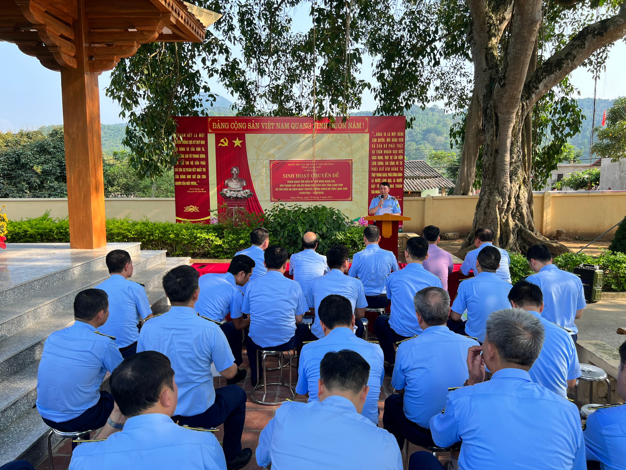 Hòa trong khí thế thi đua sôi nổi chào mừng kỷ niệm 133 năm Ngày sinh của Chủ tịch Hồ Chí Minh (19/5/1890 - 19/5/2023) và 90 năm Ngày truyền thống Đảng bộ tỉnh Lạng Sơn (15/6/1933 - 15/6/2023). Chiều ngày 18/5/2023, Chi bộ 3, Đảng bộ Cục Quản lý thị trường Lạng Sơn tổ chức sinh hoạt chuyên đề: “Tìm hiểu di tích đình Háng Pài, xã Thụy Hùng, huyện Cao Lộc, nơi thành lập Chi bộ Đảng đầu tiên của tỉnh Lạng Sơn”.